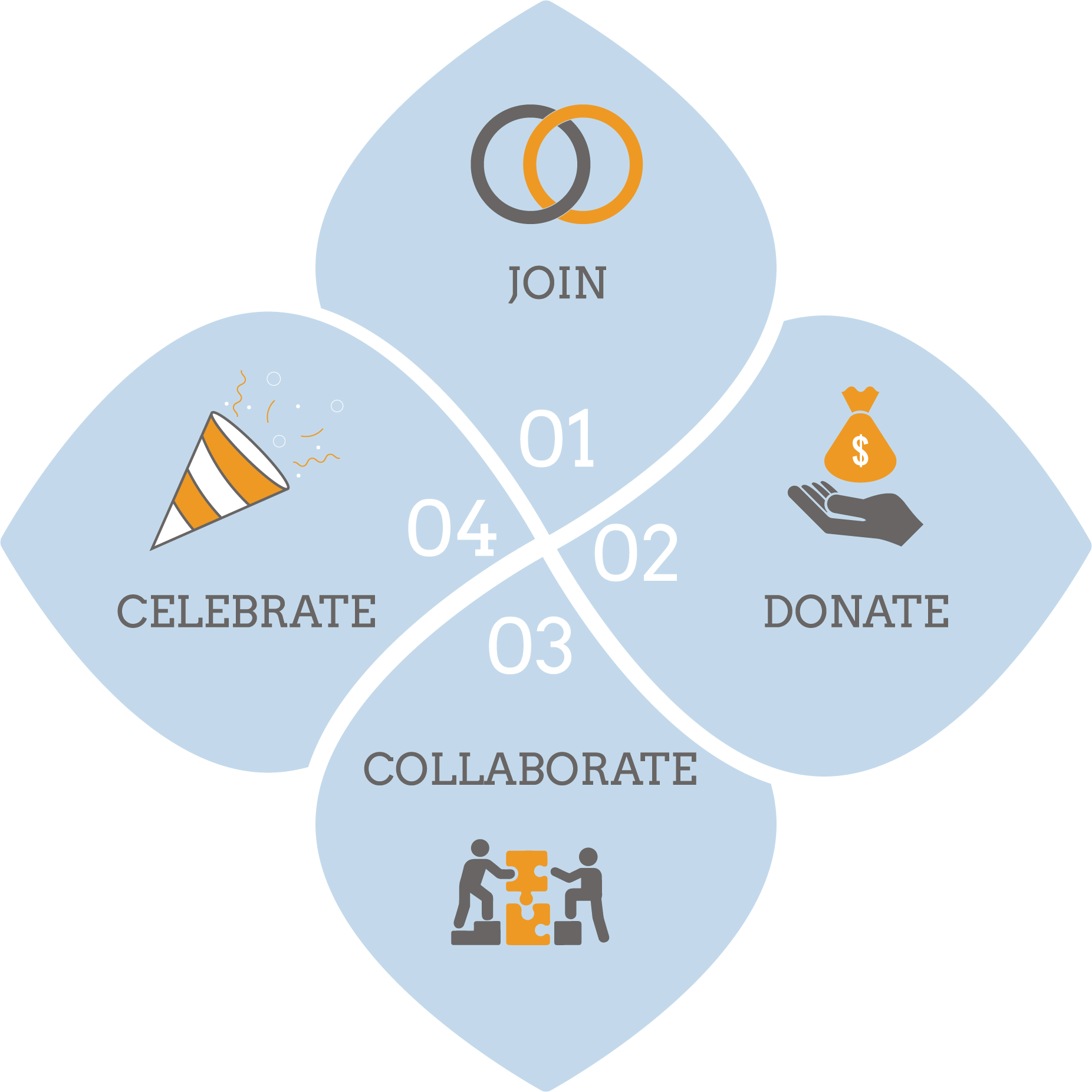 GIVE & CELEBRATE: Funds are donated to the chosen organizations, and we celebrate our shared success.
